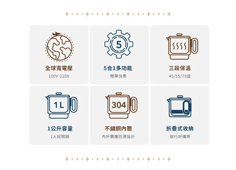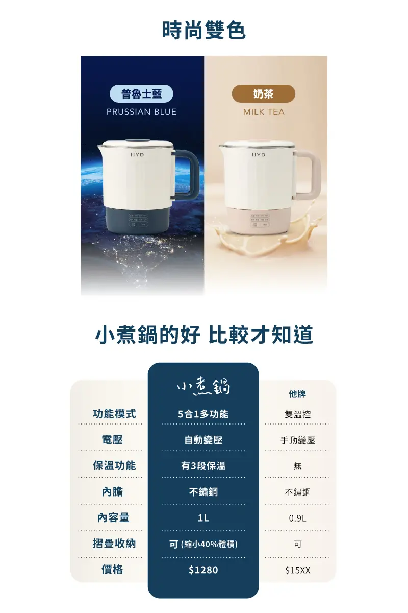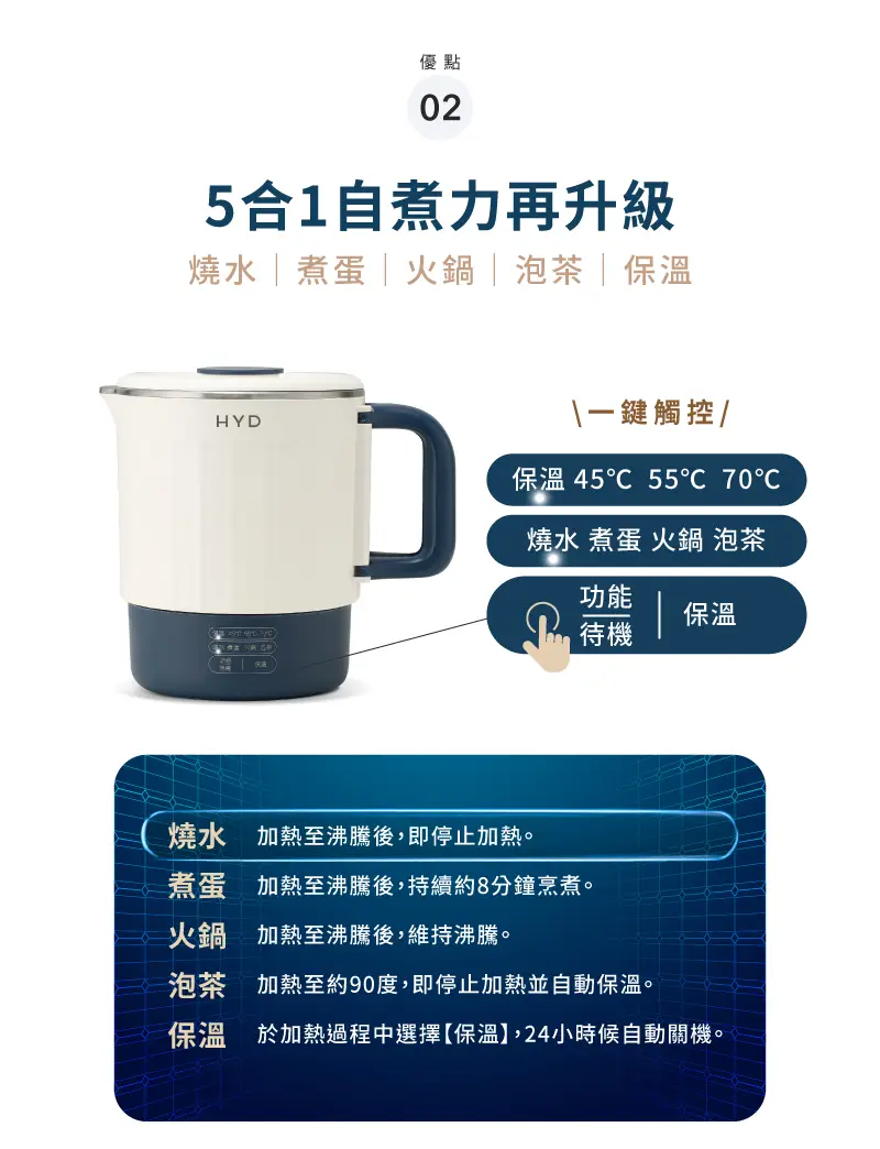 5合1多功能,5種功能最齊全燒水/煮蛋/火鍋/泡茶/三段保溫