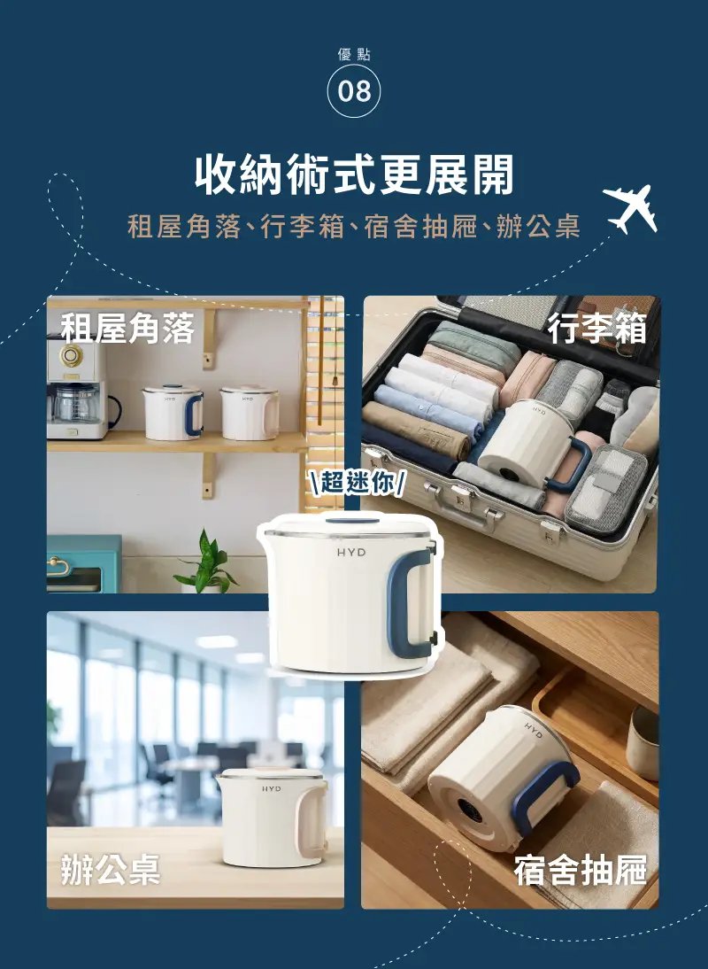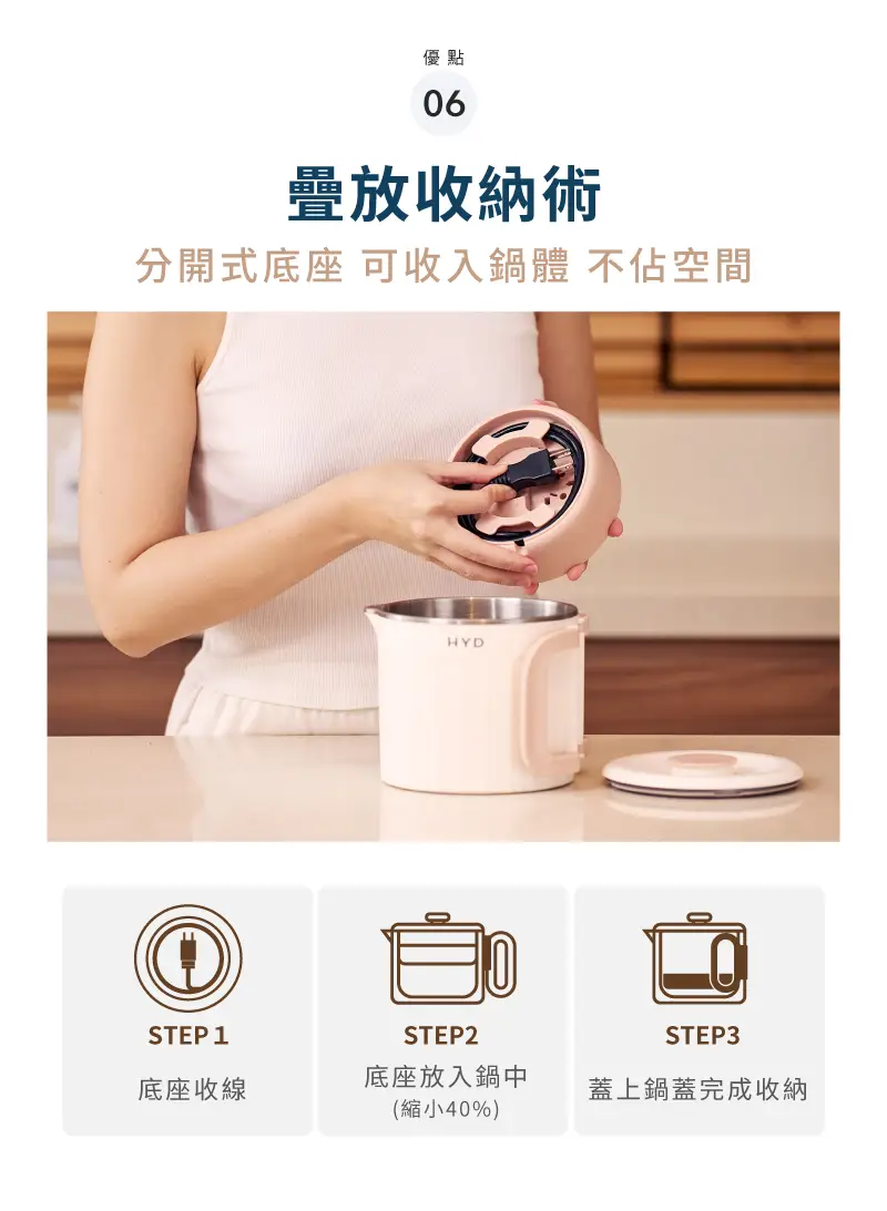 好收納 ,折疊式把手以及分開式底座,可收入杯體,不佔空間