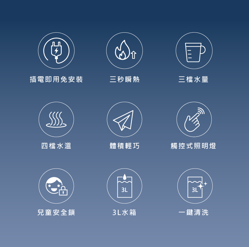 3秒瞬熱,快速達到指定溫度,喝熱水快速又便利