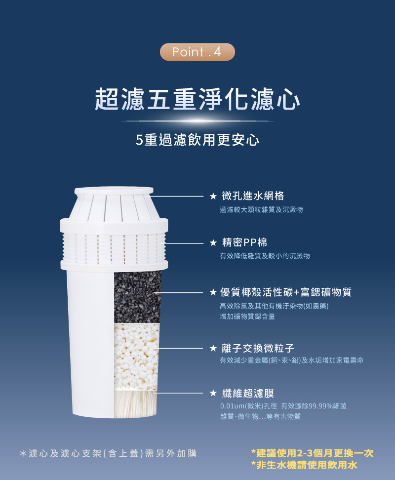 可加購五重淨化濾心,有效除氯、除菌達99%