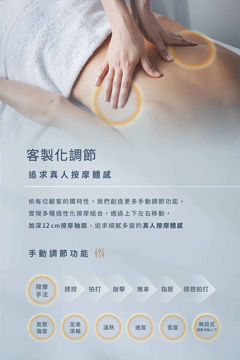 可手動調整按摩功能