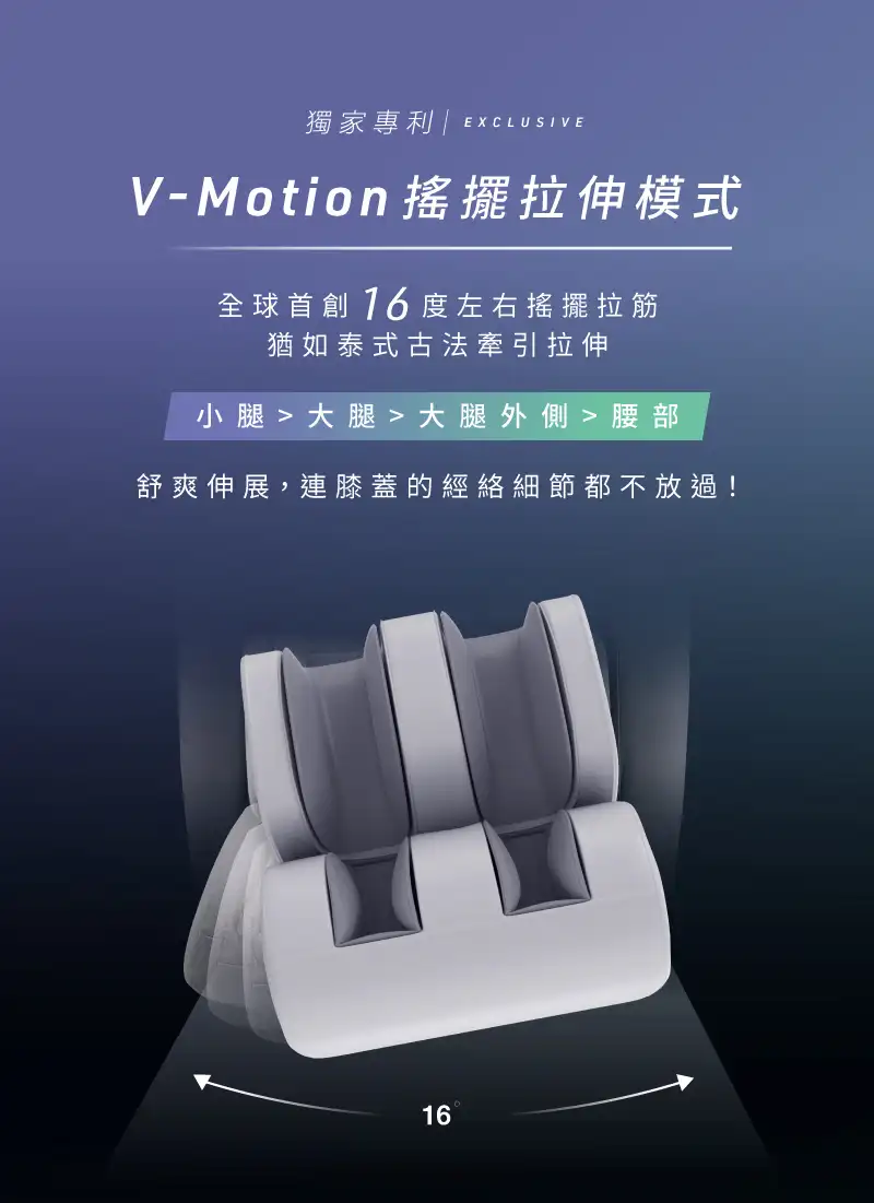 獨家專利V-Motion搖擺拉伸模式
