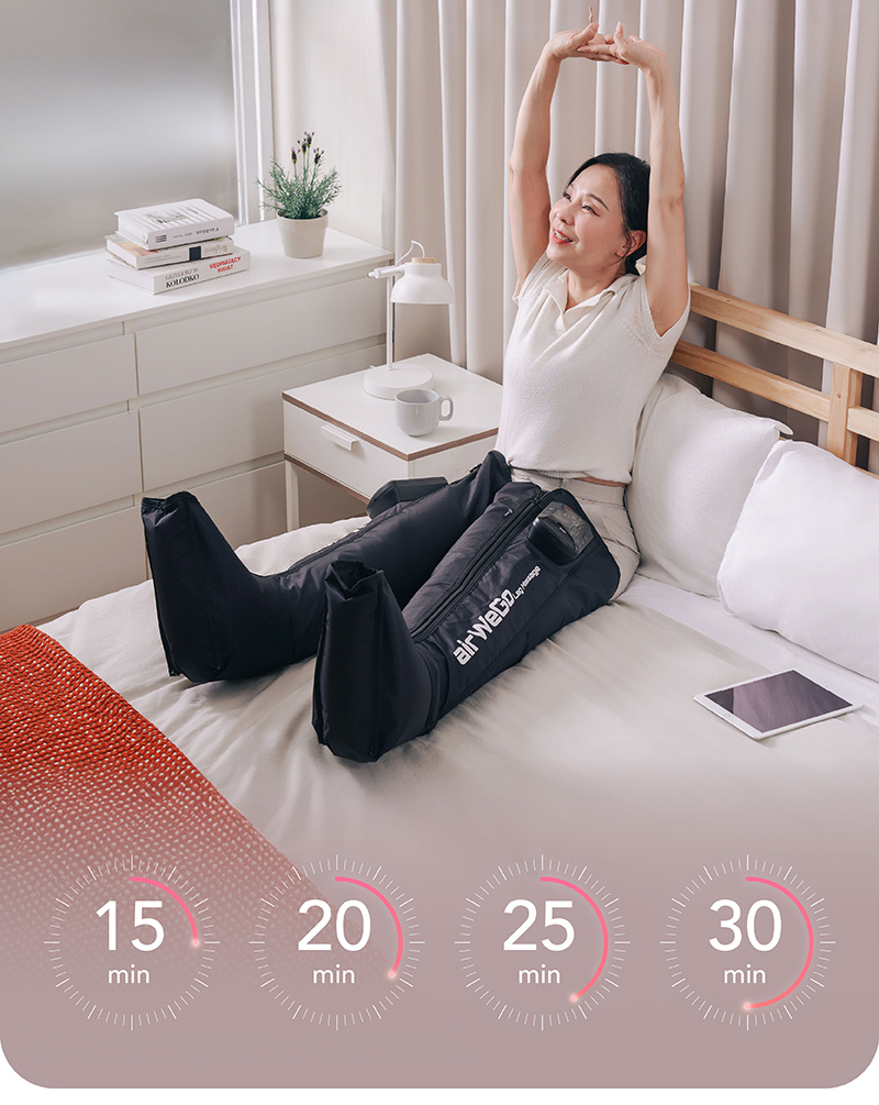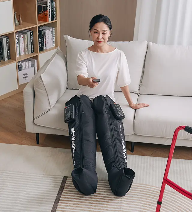 讓腫脹、痠、麻感可以透過充氣和放氣的週期性壓力,來模擬人手推揉、擠壓的按摩方式。
