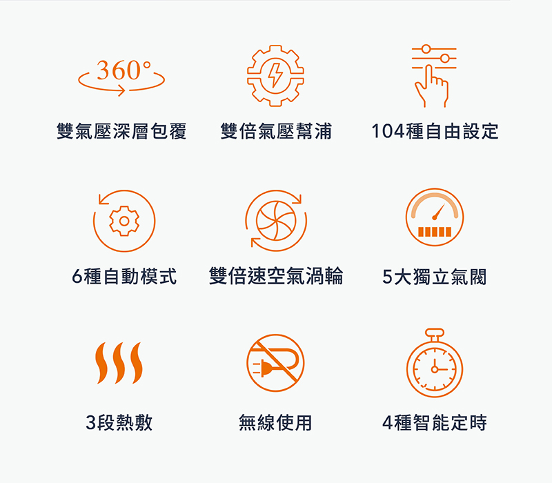 完整360度高磅數氣囊包覆按摩