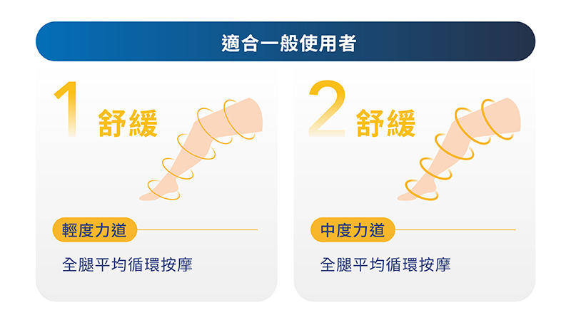 使用時若因腿圍大小而感覺力道需加強或減弱都可以自由調整