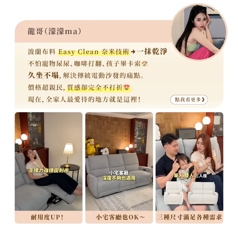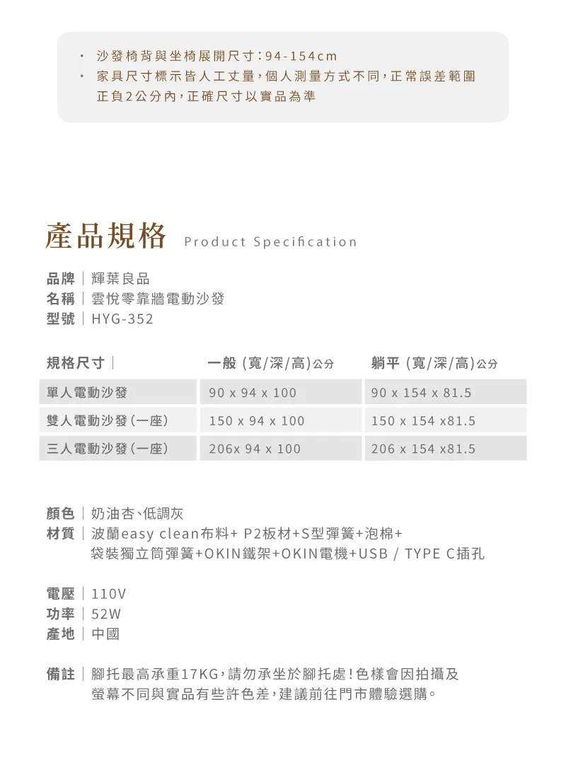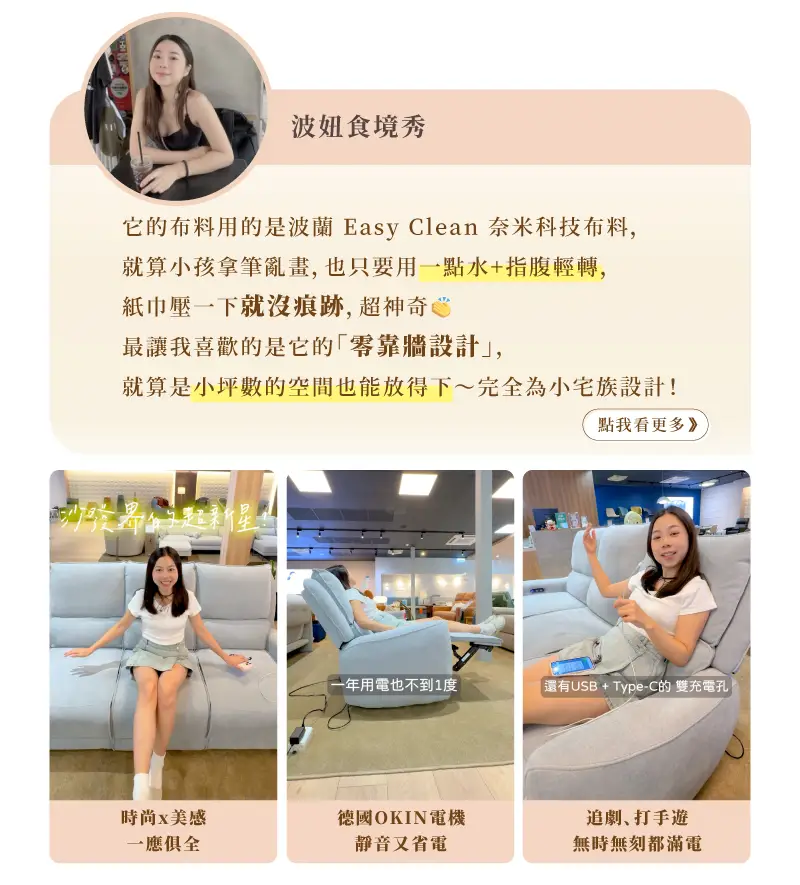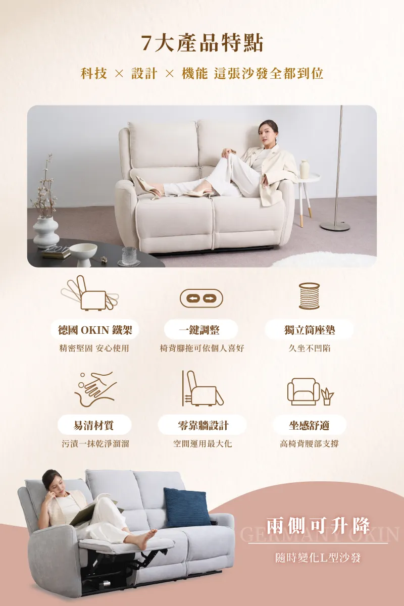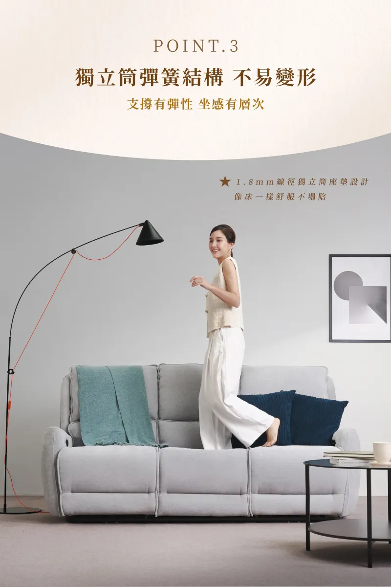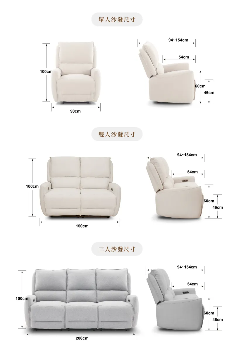 【雲悅】零靠牆三人電動沙發