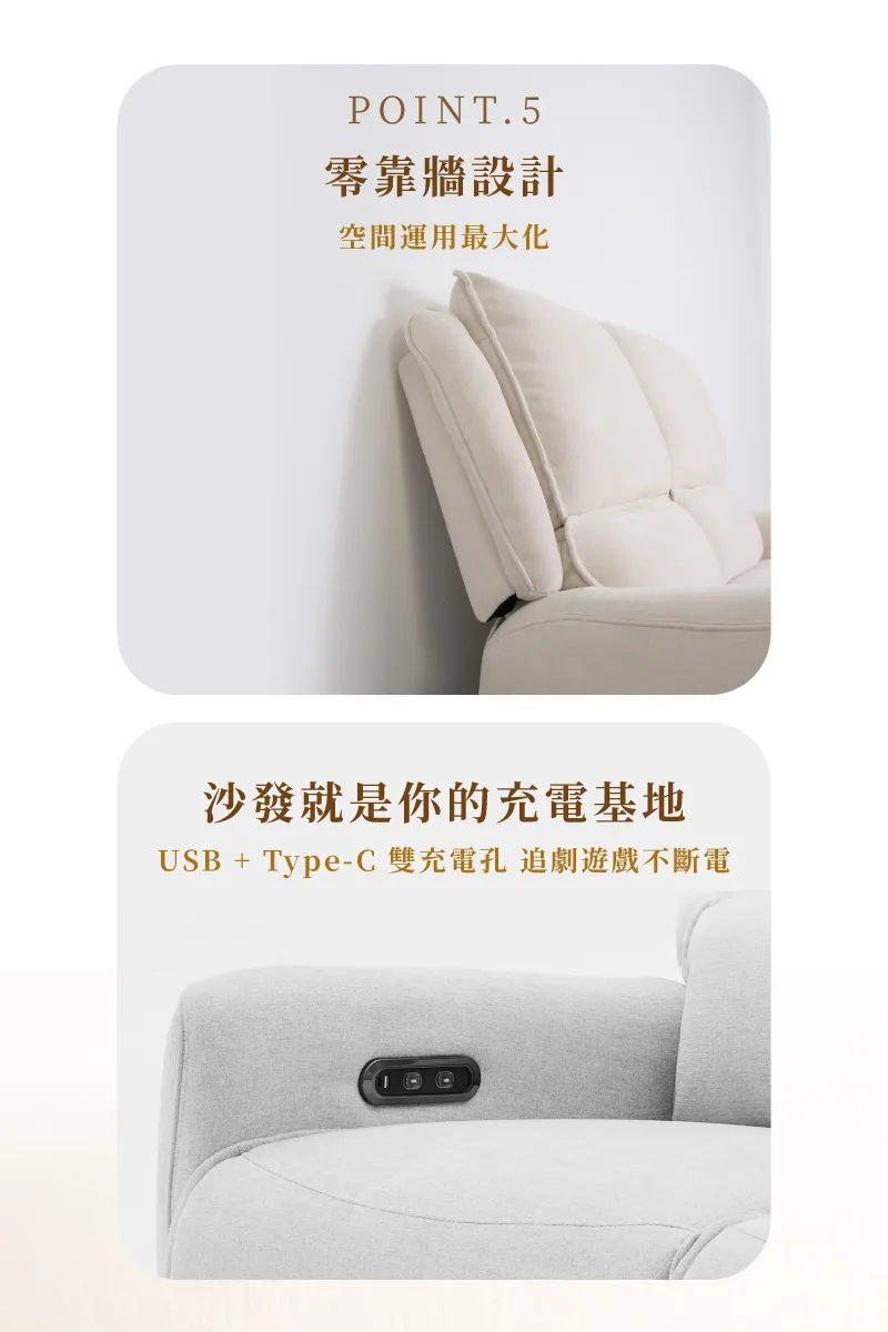 扶手附USB+Type-C雙充電孔設計