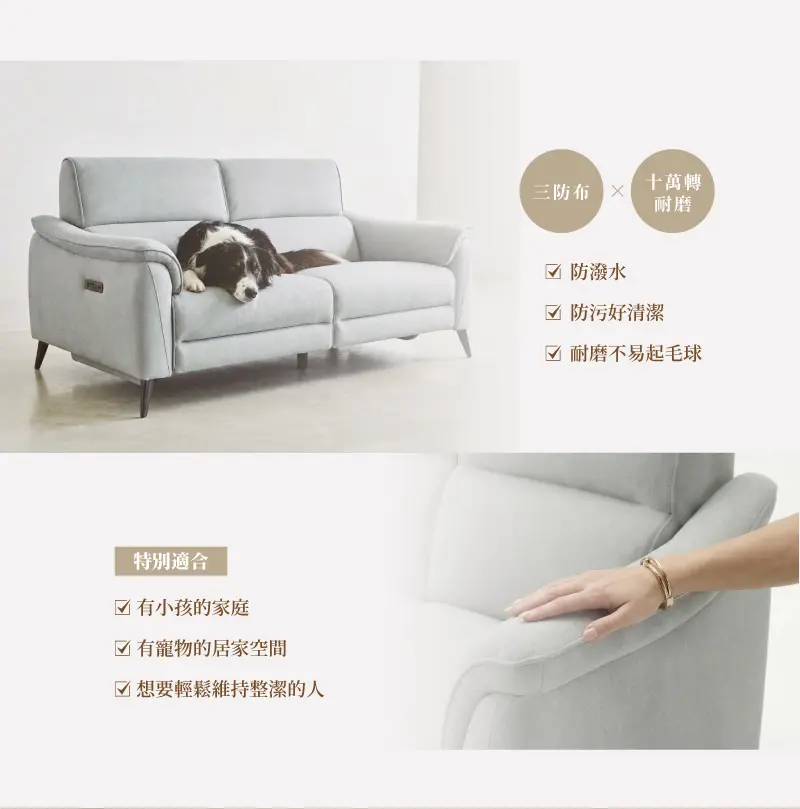 三防布料 × 十萬轉耐磨|防潑水、防污、防刮,好清潔