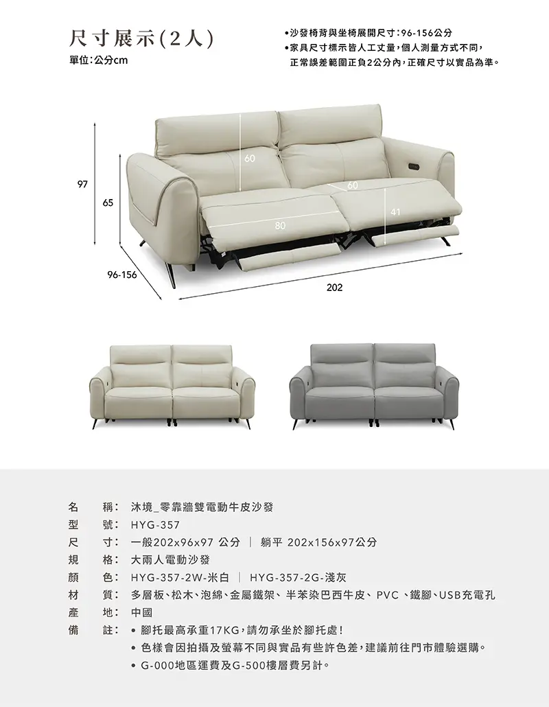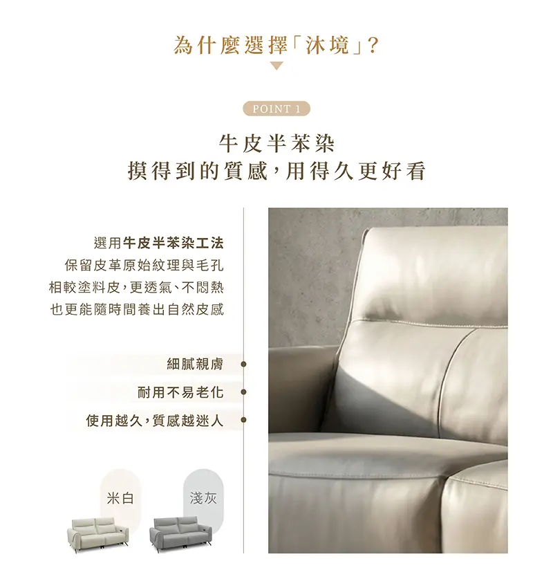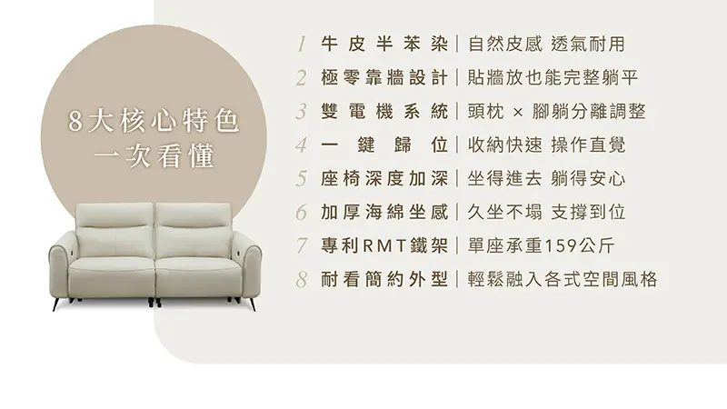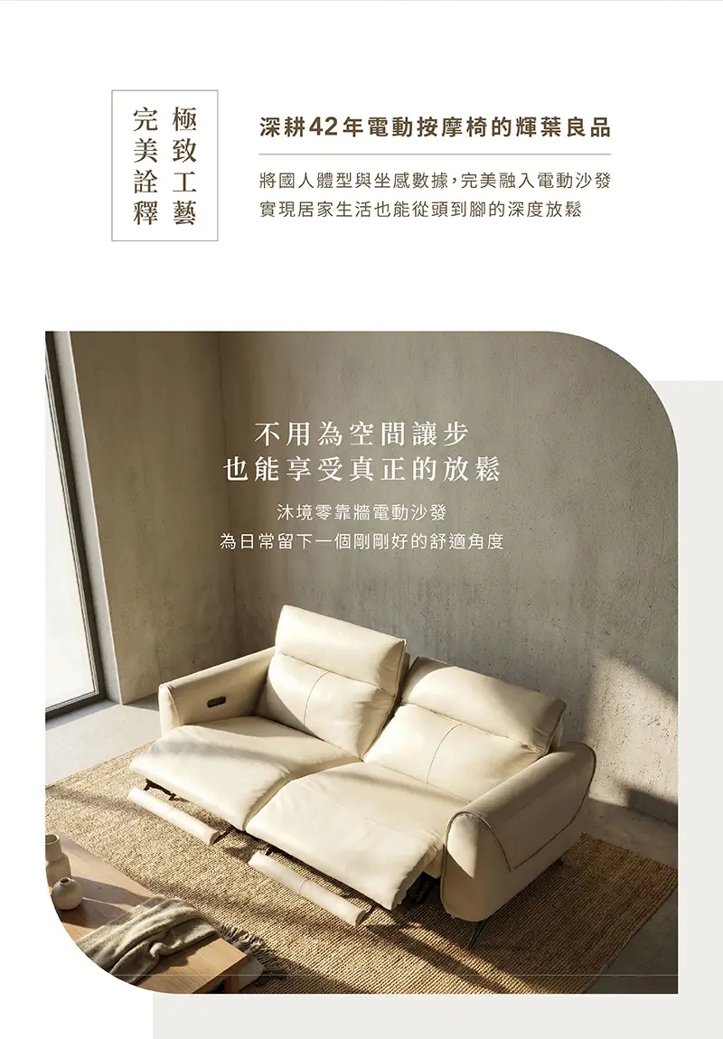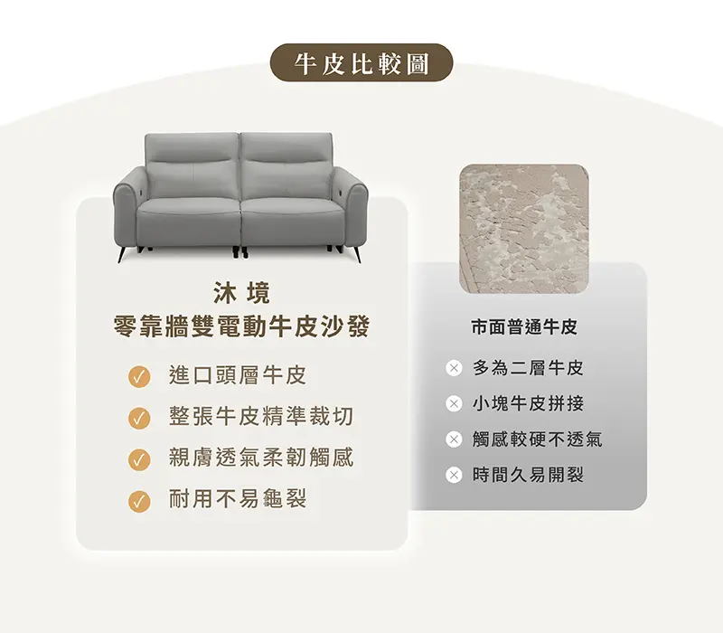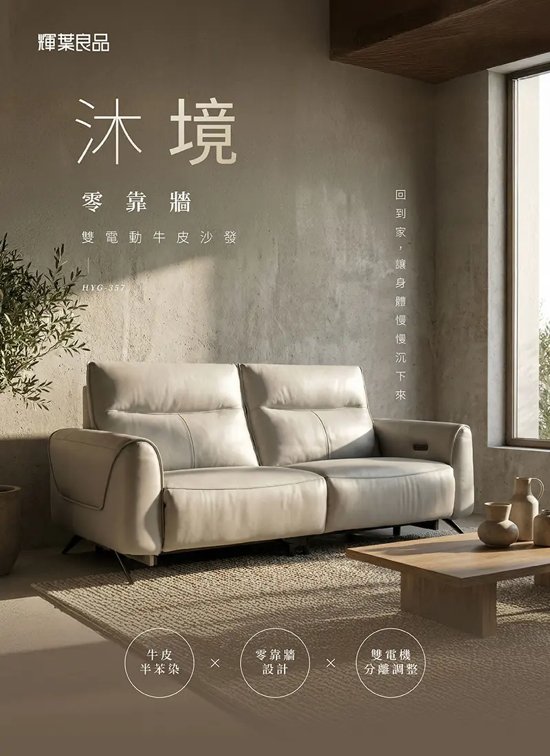 【沐境】零靠牆雙電動牛皮沙發