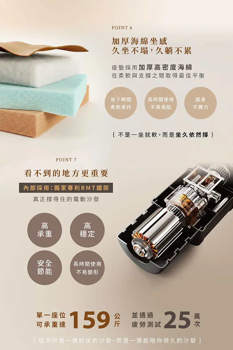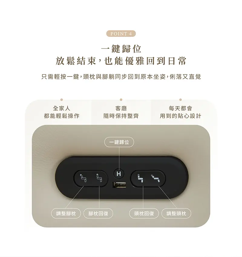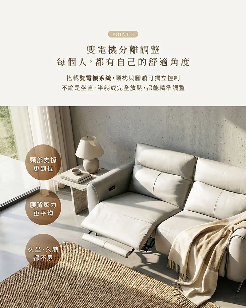 雙電機系統|頭枕 × 腳躺分離調整