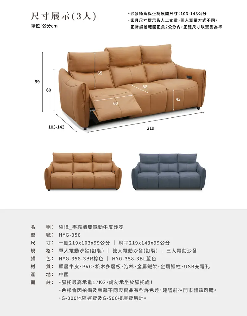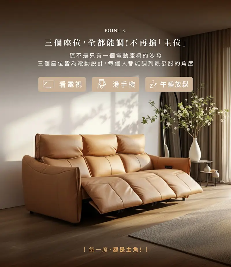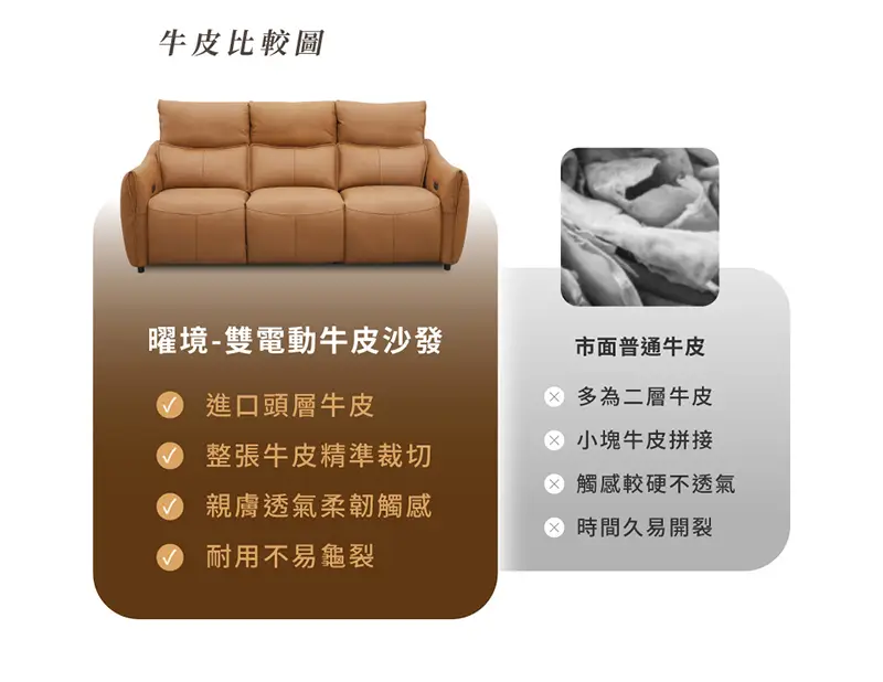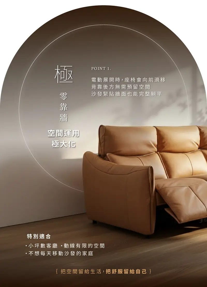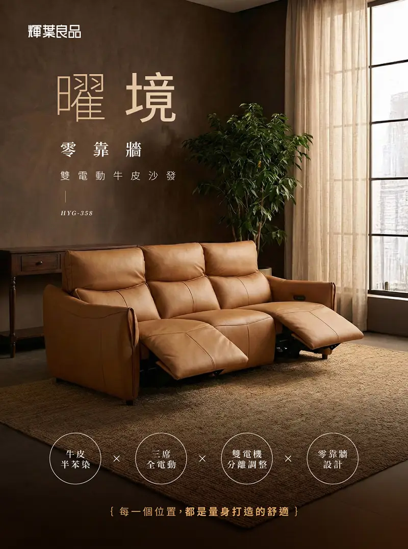 【曜境】零靠牆雙電動牛皮沙發