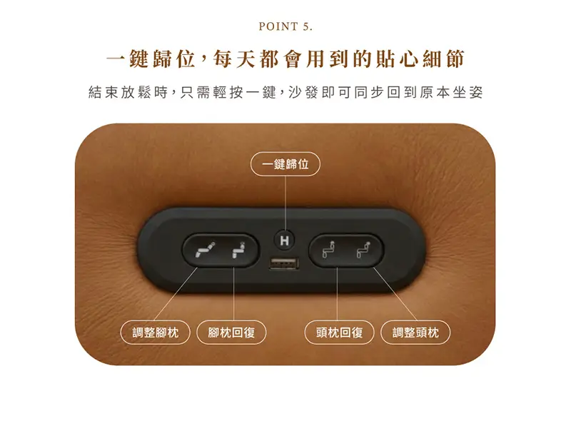 一鍵歸位,一鍵即可回到原本坐姿