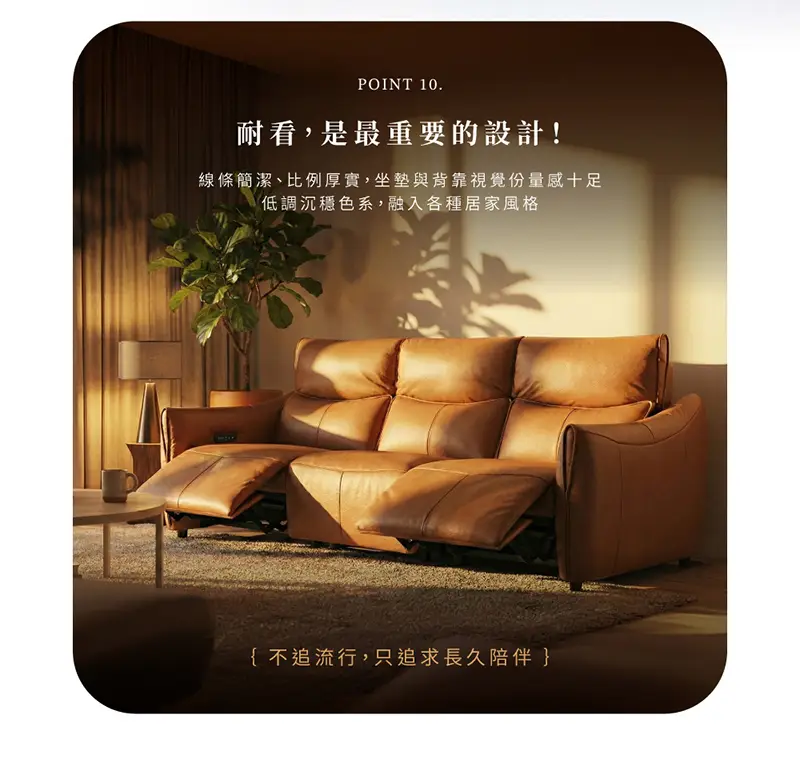 線條簡潔、份量感十足,座墊與背靠厚實,視覺與實坐感都具安全感