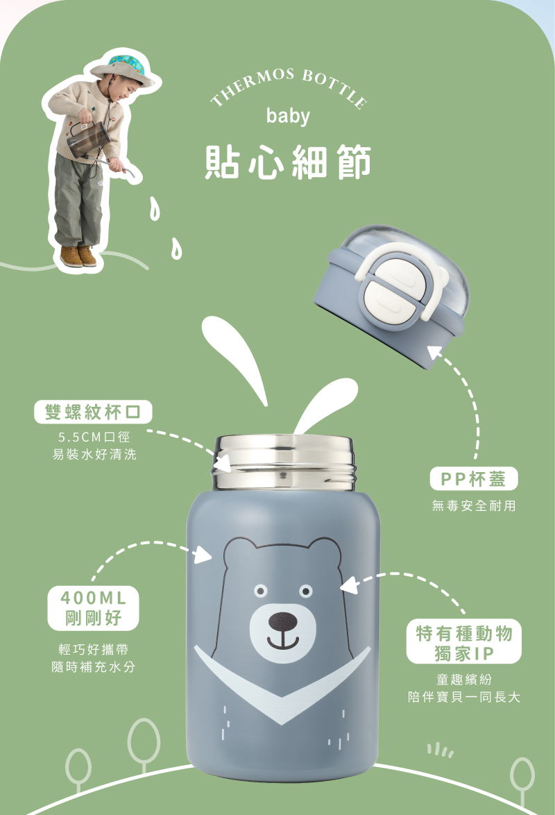 KIDMORY有種杯 - 兒童雙飲不鏽鋼保溫杯(台灣黑熊)