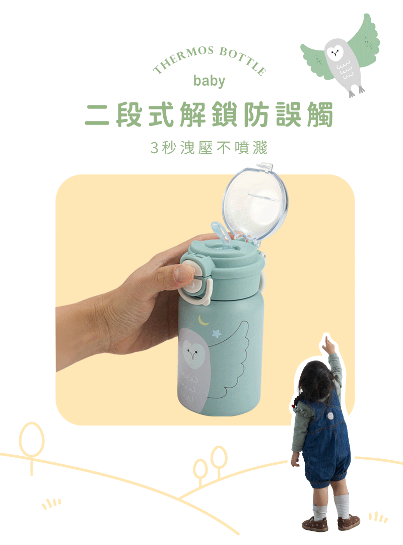 KIDMORY有種杯 - 兒童雙飲不鏽鋼保溫杯(草鴞)