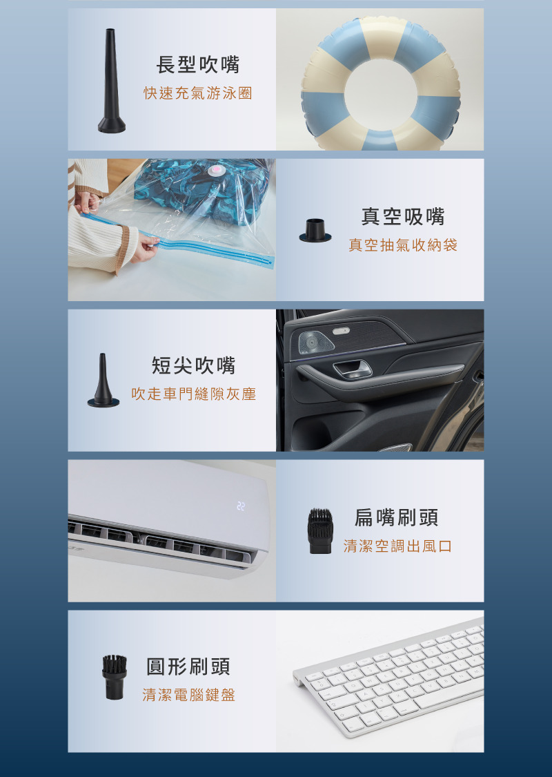 4效合1,吸塵、吹掃、充氣、抽真空同步搞定